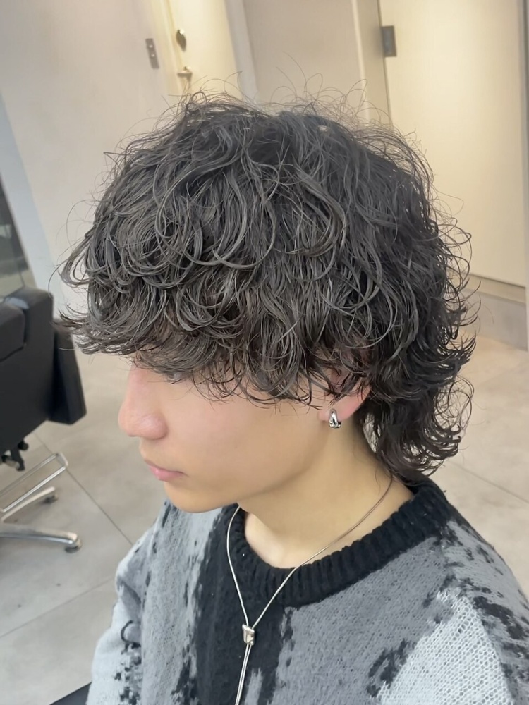マッシュスタイルのシルエットを保ちながらも、動きをプラスできるのが魅力。重たく見えがちなマッシュも、波巻きパーマをかけることで自然な軽さと抜け感が生まれます。スタイリングも、ワックスやオイルをなじませるだけでサロン帰りのような質感に。朝のセットが圧倒的に楽になるのも人気の理由です。