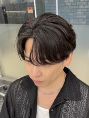 また、どんなカットスタイルにも合わせやすく、センターパート・マッシュ・ショート・ウルフまで幅広く対応可能。全体パーマでも部分パーマでも印象を変えやすいのが特徴です。特にセンターパートとの相性は抜群で、前髪にかかる柔らかなカールが大人の余裕を演出。ビジネスシーンでも違和感なく馴染むので、社会人男性にも人気です。