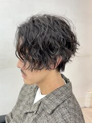 マッシュスタイルのシルエットを保ちながらも、動きをプラスできるのが魅力。重たく見えがちなマッシュも、波巻きパーマをかけることで自然な軽さと抜け感が生まれます。スタイリングも、ワックスやオイルをなじませるだけでサロン帰りのような質感に。朝のセットが圧倒的に楽になるのも人気の理由です。